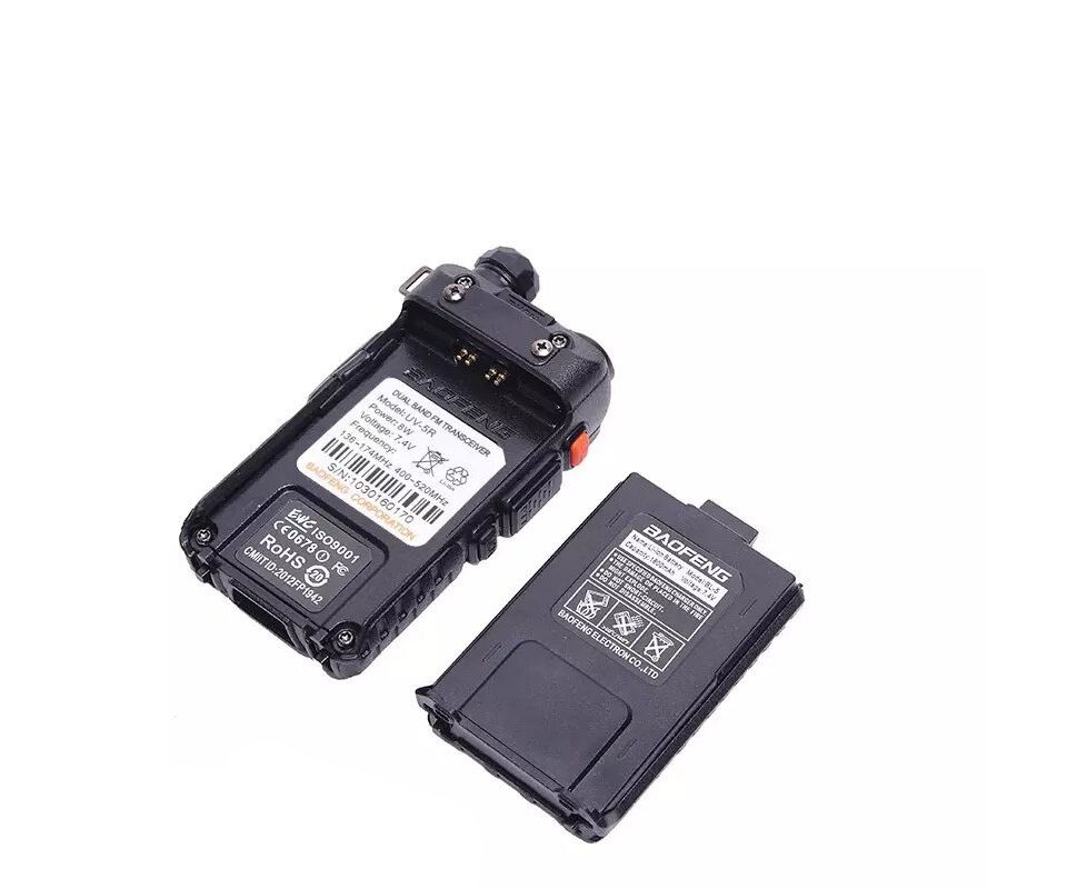 Максимальная мощность передатчика Рации Вaofeng UV-5R в 5 Вт гарантирует связь до 8 км на открытой местности. Чувствительность приемника 0,2 мкВ  допускает ее эксплуатацию на мощности 1 Вт, при правильном выборе рабочих частот. Это значительно увеличивает ресурс рации.